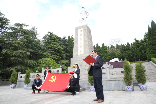 為深切緬懷革命烈士,傳承弘揚(yáng)紅色精神,扎實開展好黨史學(xué)習(xí)教育,會展公司黨支部聯(lián)合南京市貿(mào)促會第七黨支部和六合區(qū)橫梁街道鐘林村黨總支于4月20日下午前往南京市愛國主義教育基地——桂子山烈士陵園,開展以“學(xué)黨史緬懷先烈,踐初心砥礪前行”為主題的黨日活動。市貿(mào)促會第七黨支部全體黨員、會展公司黨支部全體黨員、入黨積極分子和團(tuán)員以及鐘林村黨總支全體黨員參加了此次活動。