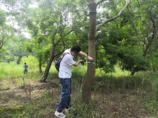 近期“秋老虎”發(fā)威,炎炎烈日、驕陽(yáng)似火,林中蚊蟲叮咬,地面起伏、時(shí)有溝壑。但沒有一個(gè)人叫苦喊累,認(rèn)真的用樹尺測(cè)量每一棵苗木,并詳細(xì)記錄。至太陽(yáng)西下,大家用腳丈量了500多畝田地,測(cè)量了10000余株苗木?!巴陜善诘拿缒颈P點(diǎn),我要盤四五天才能盤點(diǎn)完,現(xiàn)在有大家的幫忙,不到一天就完成了,工作效率大大提高了?!泵缙载?fù)責(zé)人高興地說。