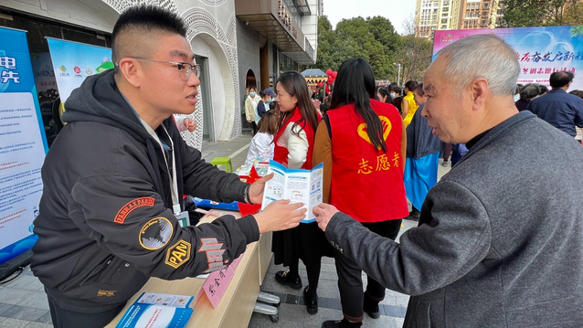 公司黨支部在紫金1912·玖愛谷廣場內(nèi)搭設(shè)愛心攤位,開展家庭安全知識普及志愿活動。