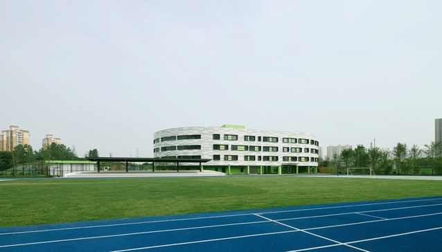 ——項目設(shè)計之初秉承給學(xué)生提供最大限度活動空間的理念,預(yù)留了較多的運動空間。設(shè)有4處室外籃球場,1個天然草坪足球場,以及6道300米塑膠跑道,并且是河西地區(qū)第一家采用藍(lán)色塑膠跑道的學(xué)校!