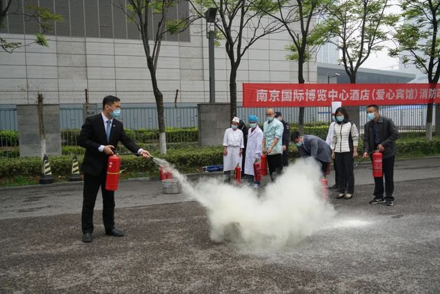 南京國際博覽中心酒店全體員工集體參與了消防演練。此次演練分為安全疏散、醫(yī)療救護(hù)和滅火演練三個(gè)部分。