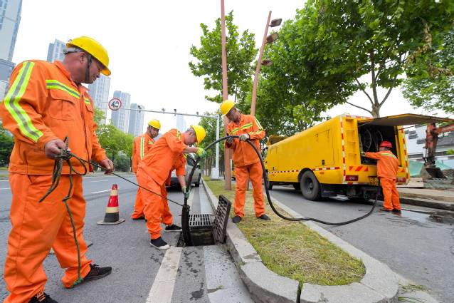 本次防汛練兵分為兩個部分進(jìn)行,第一部分是出現(xiàn)道路積淹水險情時調(diào)派泵車,應(yīng)急抽排使道路消險;第二部分是消險完成后對管道進(jìn)行排查并清疏。演練共出動防汛人員35人,防汛車輛8輛。整個演練過程緊張、有序,各項(xiàng)安保措施落實(shí)到位。