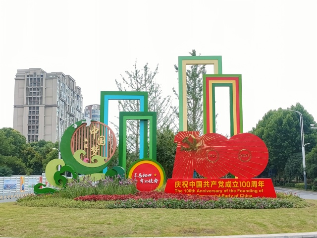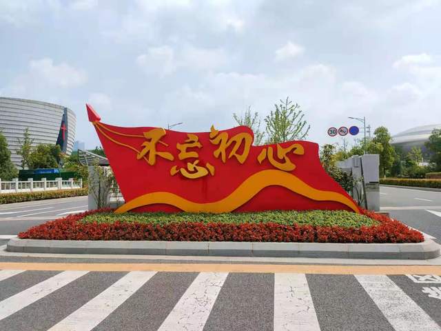 不忘初心來時(shí)路,同心共筑中國(guó)夢(mèng)。位于建鄴區(qū)夢(mèng)都大街揚(yáng)子江大道路口高7米,占地面積100余平方米的主題景觀,在綠地基礎(chǔ)上突顯了“慶祝中國(guó)共產(chǎn)黨成立100周年”活動(dòng)標(biāo)識(shí)等黨建元素;中國(guó)傳統(tǒng)紋樣圖案、彩色立體門框的設(shè)計(jì),賦予整件作品立足傳統(tǒng)、開放包容的內(nèi)涵;蛇鞭菊、斑葉芒、彩葉草、夏堇等各式花卉錯(cuò)落有致的鋪滿地面,烘托了喜迎建黨百年的喜慶氛圍。