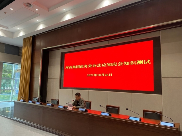 2021年10月26日下午,河西集團監(jiān)察專員辦公室開展警示教育活動,組織集團本部處級干部及下屬子企業(yè)領導班子成員進行《中華人民共和國公職人員政務處分法》應知應會知識測試。本次測試應到36人,實到34人,2人遞交了書面請假材料,測試均分96分,學習宣貫效果良好。