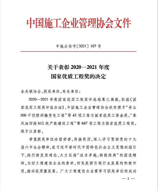 2021年12月6日,中國施工企業(yè)管理協(xié)會公布2020-2021國家優(yōu)質(zhì)工程獎獲獎名單,河西集團新城公司所屬南京河西工程項目管理有限公司代建的招商銀行南京分行招銀大廈項目喜獲該獎項。國家優(yōu)質(zhì)工程獎設(shè)立于1981年,是經(jīng)國務(wù)院確認的我國工程建設(shè)領(lǐng)域設(shè)立最早,規(guī)格最高,跨行業(yè)、跨專業(yè)的國家級質(zhì)量獎。