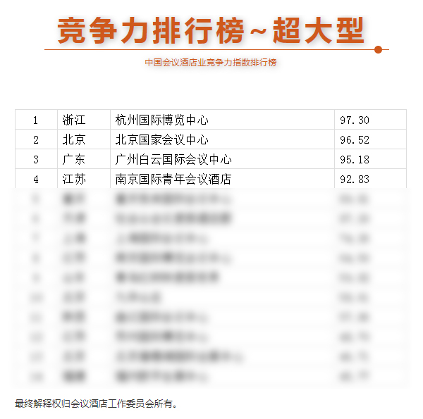 本屆榜單按照酒店的規(guī)模體量分為超大型、大型、中型、小型四個(gè)類(lèi)別,從上一年度承接會(huì)議數(shù)量和規(guī)模、會(huì)議室容量和數(shù)量、客房總數(shù)、渠道客評(píng)、經(jīng)營(yíng)數(shù)據(jù)等多方面進(jìn)行綜合評(píng)價(jià),經(jīng)數(shù)據(jù)調(diào)研、專(zhuān)家評(píng)審等多個(gè)環(huán)節(jié)細(xì)致評(píng)估,得到了相對(duì)客觀準(zhǔn)確的評(píng)選結(jié)果。國(guó)青酒店憑借自身場(chǎng)地優(yōu)勢(shì)、對(duì)會(huì)議客戶(hù)市場(chǎng)的探索及挖掘、專(zhuān)業(yè)的會(huì)議接待服務(wù),贏得了專(zhuān)家評(píng)委及企業(yè)買(mǎi)家的認(rèn)可,在榜單中以總分92.83的好成績(jī)位列全國(guó)第四。