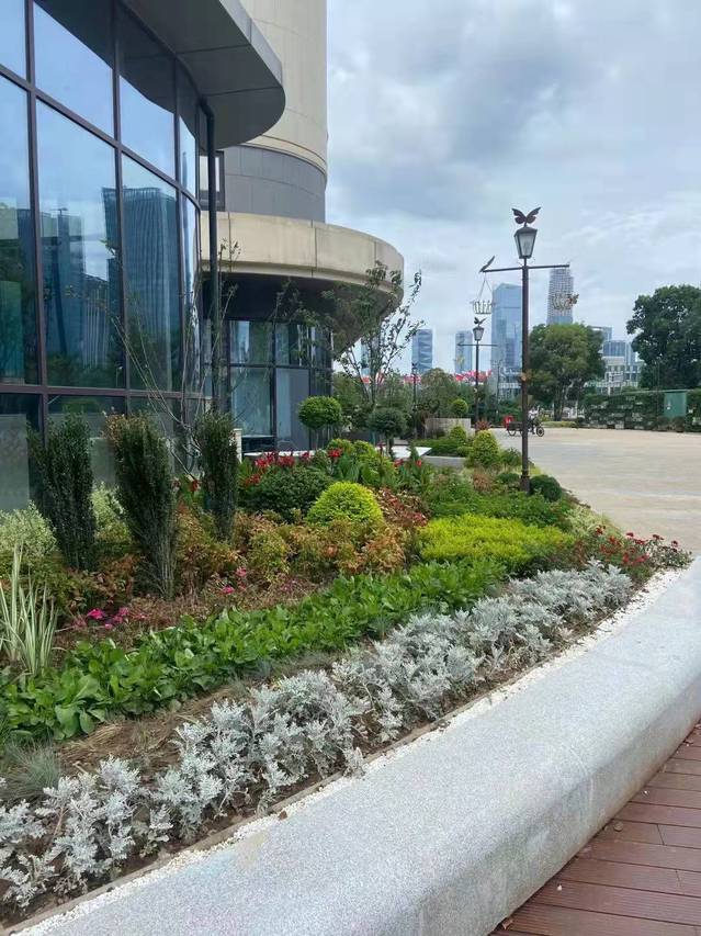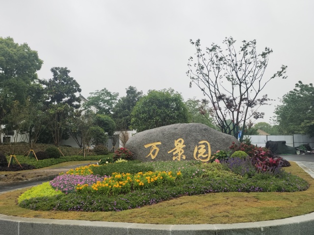萬景園北入口項目將原始花壇改造成弧形整石花壇,常夏石竹、八仙花、女貞球等彩葉花灌木鋪滿在景觀石的四周,形成植物品種豐富、層次分明的小型花境。入口處增設(shè)標(biāo)有“萬景園”字樣高達12米的立牌,高大醒目,與魚嘴公園、青年文化公園、綠博園形成了統(tǒng)一的濱江風(fēng)光帶入口標(biāo)識。