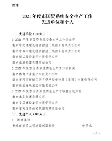 近日,河西集團獲得南京市安委會2021年度安全生產(chǎn)工作優(yōu)秀單位、南京市國資系統(tǒng)2021年度安全生產(chǎn)工作先進單位和市國資系統(tǒng)安全生產(chǎn)工作創(chuàng)新獎。王銘周、王凱、崔洪暢、谷影偉、馬紫琳、史偉強等6人被評為2021年度南京市國資系統(tǒng)安全生產(chǎn)先進個人。