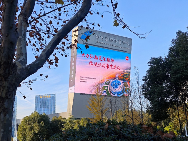 憲法是國家的根本大法,是治國安邦的總章程。今年12月4日是第十個國家憲法日,12月4日所在的周是第六個“憲法宣傳周”。為深入學(xué)習(xí)宣傳貫徹習(xí)近平法治思想,著力營造學(xué)習(xí)宣傳憲法的濃厚氛圍,弘揚憲法精神,維護(hù)憲法權(quán)威,集團(tuán)充分借力戶外大屏媒介載體進(jìn)行普法宣傳,會展、公園、酒店等板塊根據(jù)集團(tuán)部署聯(lián)運同步點亮“大力弘揚憲法精神、推進(jìn)法治南京建設(shè)”宣傳標(biāo)語,利用各類公共場所電子顯示屏滾動播放,使憲法宣傳走進(jìn)千家萬戶。