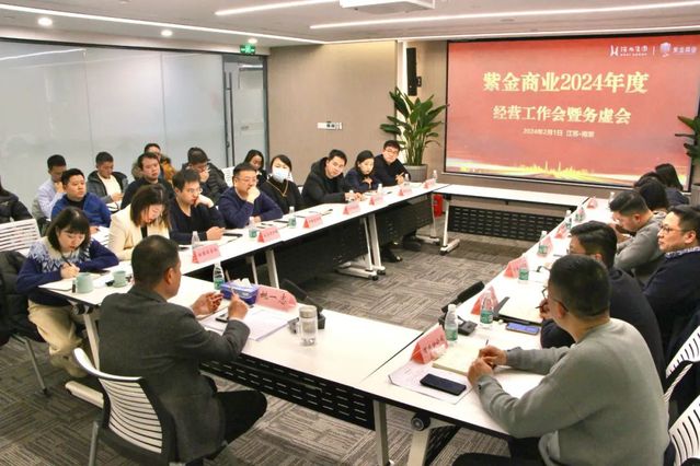 凱歌辭舊歲,金龍迎新春。2024年2月1日,紫金商管公司召開了2024年度經(jīng)營工作會暨務(wù)虛會。首先,招商運營部通報2023年各項經(jīng)營指標(biāo)完成情況、店長排名和“五拼五比曬五榜”年度榜單,傳達(dá)2024年度各項經(jīng)營指標(biāo)。