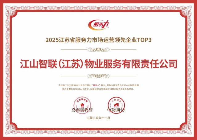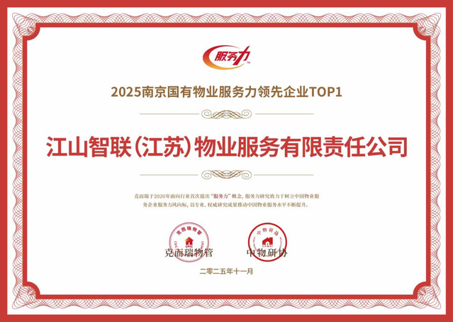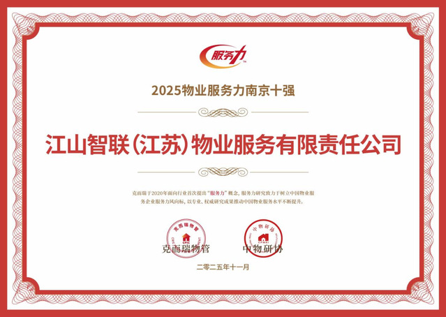 河西集團(tuán)江山智聯(lián)物業(yè)憑借卓越的服務(wù)品質(zhì)與前瞻的戰(zhàn)略布局,一舉斬獲2025南京國有物業(yè)服務(wù)力領(lǐng)先企業(yè)TOP1、2025江蘇省服務(wù)力市場運營領(lǐng)先企業(yè)TOP3、2025物業(yè)服務(wù)力南京十強、2025物業(yè)服務(wù)力江蘇省三十強、2025華東區(qū)域物業(yè)服務(wù)力百強企業(yè)、五項行業(yè)重磅榮譽。